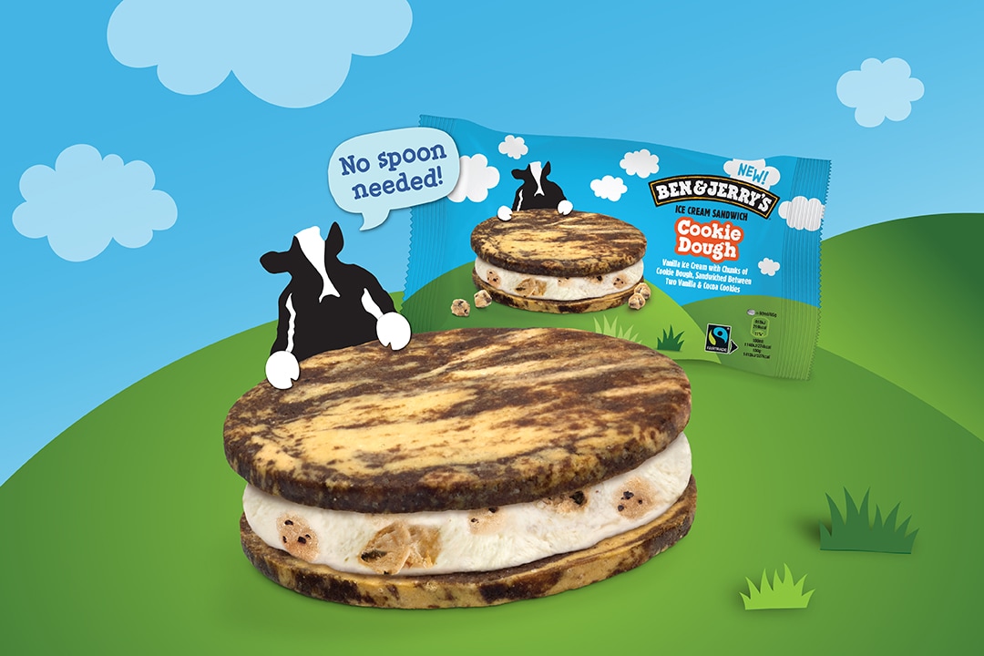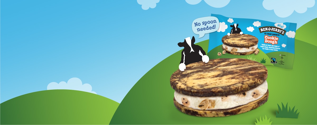 Ta för dig av njutning med Cookie Dough-sandwich, smakrika kakor marmorerad med vanilj och kakao. Kakor och glass... vad mer kan man önska?